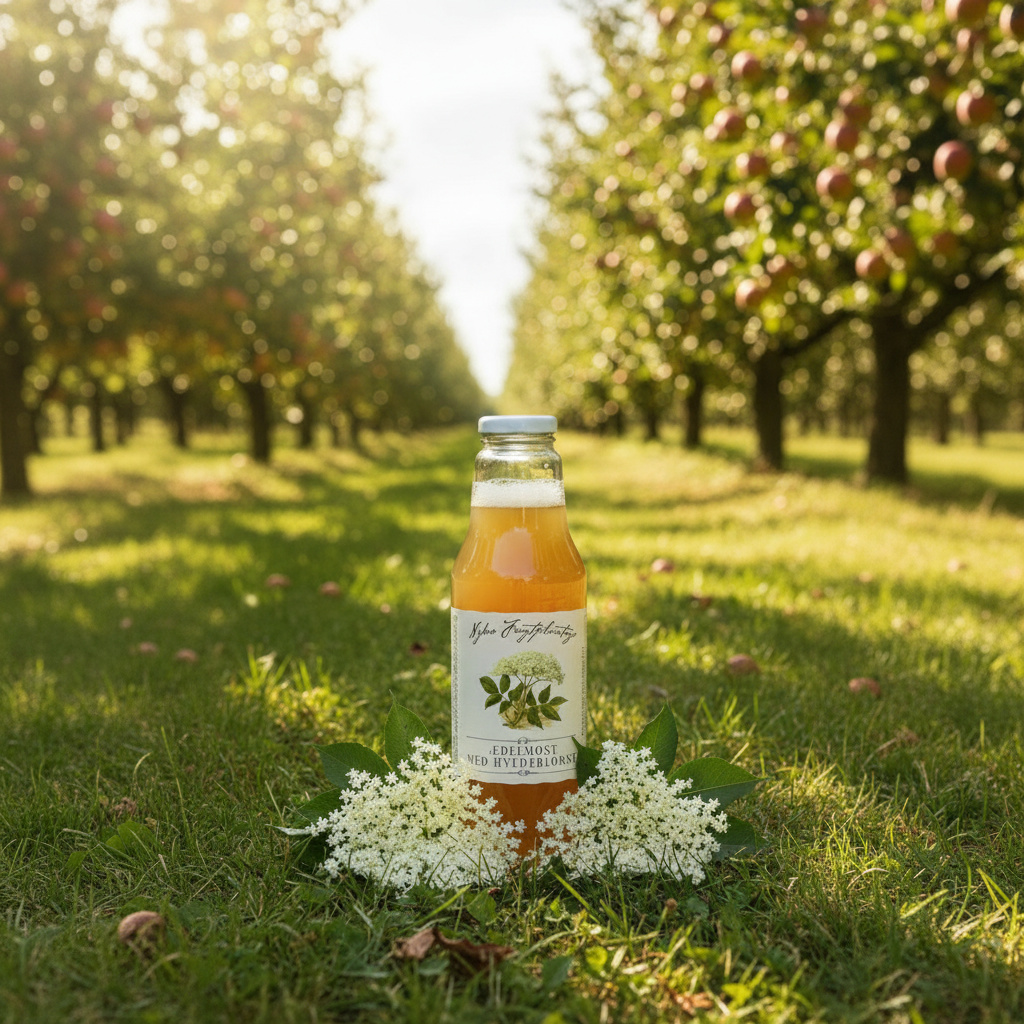 Æblemost med hyldeblomst fra Nybro Mosteri – friskpresset fra Fyn