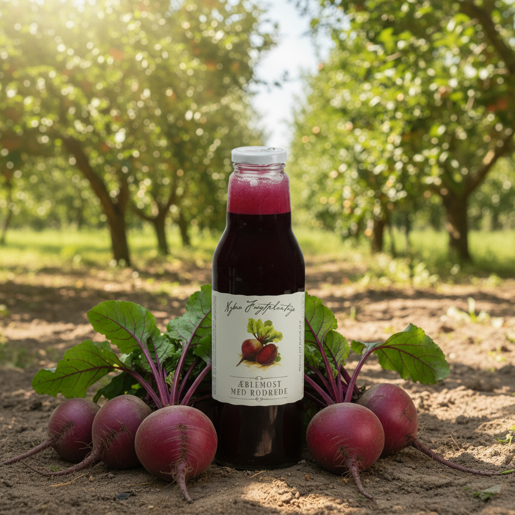 Æblemost med rødbede fra Nybro Mosteri – koldpresset kvalitet fra Fyn